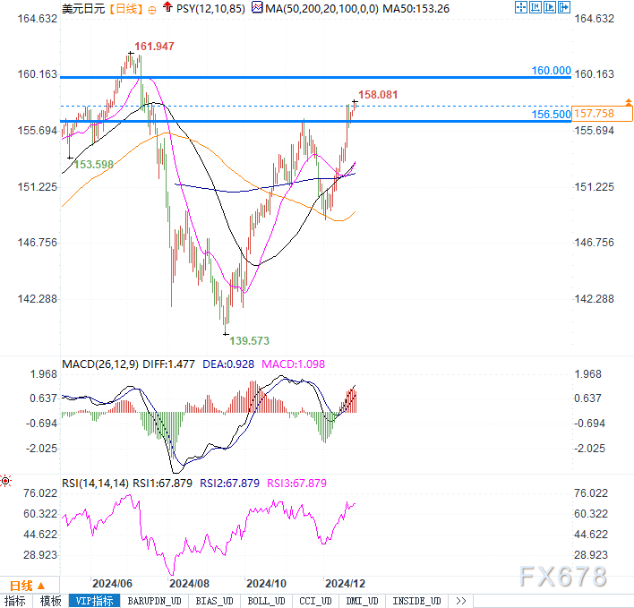 美元兑日元目前逼近160关口,这一心理阻力位至关重要。