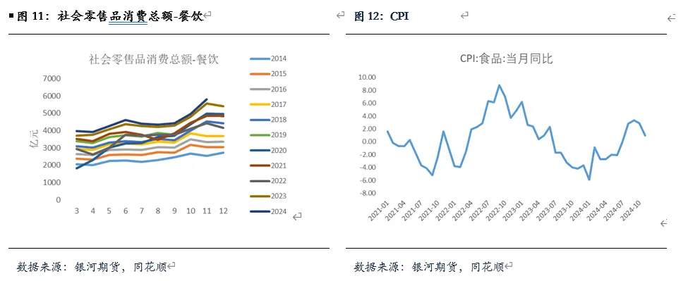 今年社零消费数据整体表现比较良好,2024年1-11月期间同比增速大约在3%,其中食品类同比增速在4.18%左右,考虑到年内整体CPI指数下降0.57%,食品类实际增速应当高于数据表现,在剔除价格变化的情况下对比2019年同比增速预计在5.46%左右。从整体消费数据来看,当前餐饮消费增速维持正常水平。
