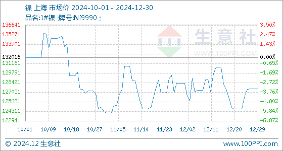 12月30日生意社镍基准价为127550.00元/吨