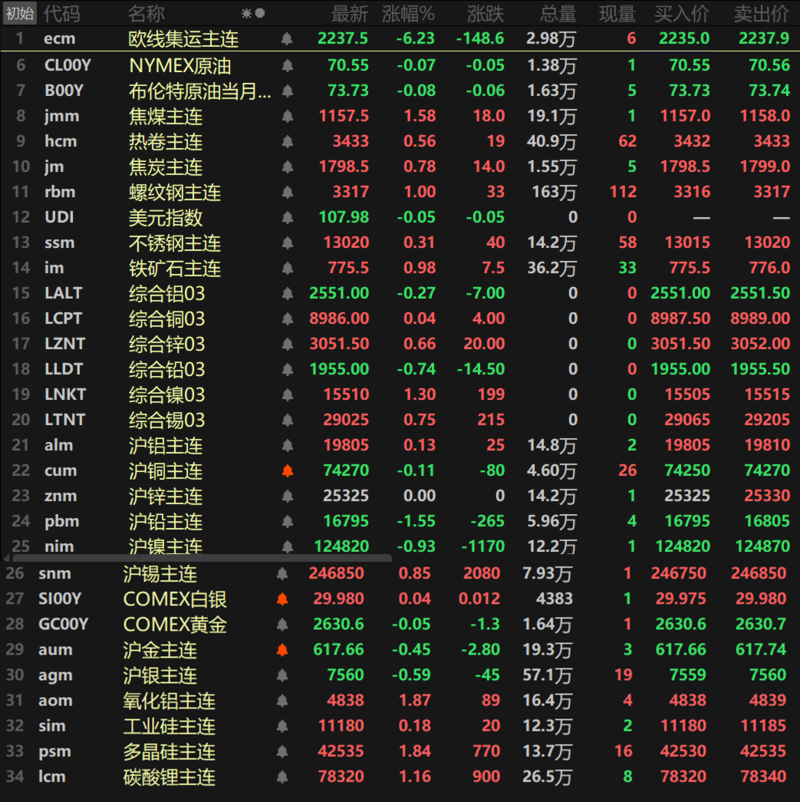 金属外强内弱伦镍氧化铝多晶硅碳酸锂涨逾1%欧线集运大跌超6%【SMM日评】