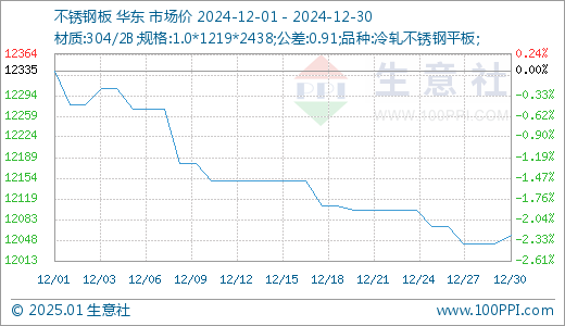 生意社:12月份不锈钢价格小幅下跌