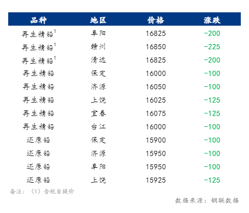 据Mysteel数据显示,今日精废差为25元/吨,叫上一交易日扩大25元/吨,日内1#铅锭价格下跌225元/吨,报16800元/吨。铅价大跌,再生炼企鲜有报价,其中湖南、贵州、河南、江西等市场部分持货商报价平水至升水出厂,精废差倒挂。