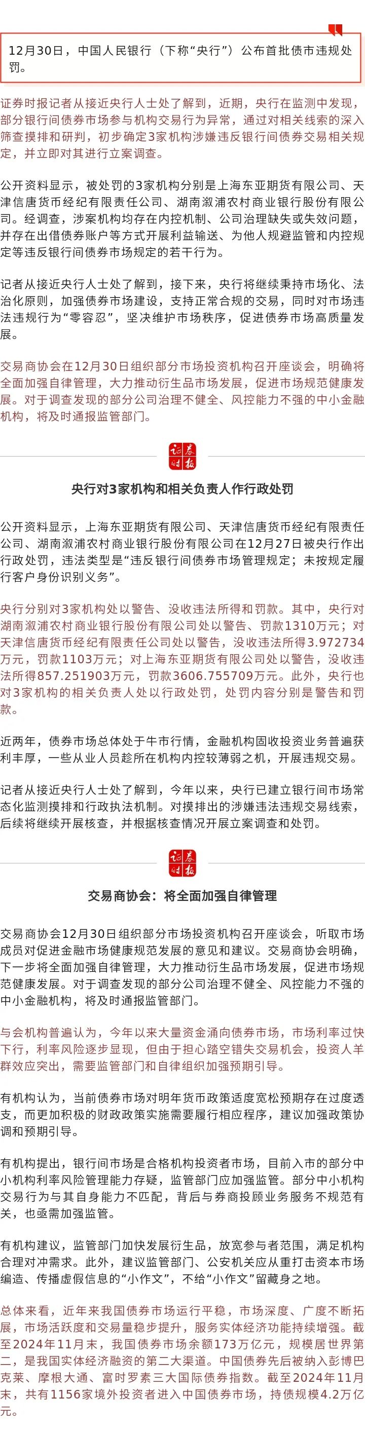 央行公布首批债市违规处罚:三家机构累计被罚超6000万元