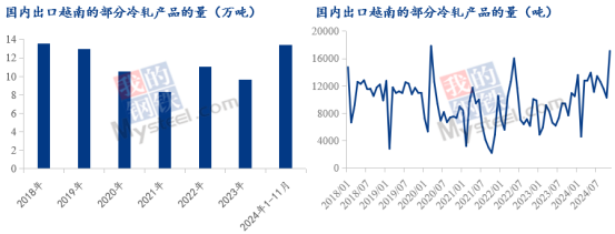 前言:越南决定于2024年10月下旬取消对中国大陆、中国台湾、印度尼西亚及马来西亚的部分冷轧不锈钢反倾销措施后(具体详情),中国不锈钢生产商/出口商欣喜不已。因为2024年以来,因下游加工厂迁移以及越南经济发展基建需求增多,中国出口越南的不锈钢量大幅提升,1-11月,国内不锈钢出口越南的量同比增加15万吨,增幅55%。(Mysteel解读:越南取消冷轧不锈钢反倾销税,谁是最大的赢家?)