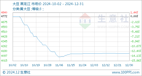 12月31日生意社大豆基准价为4144.00元/吨