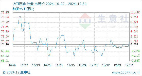 12月31日生意社WTI原油基准价为70.60美元/桶