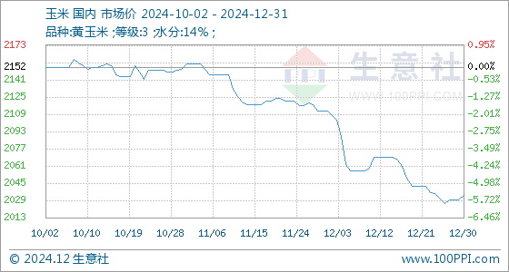 12月31日生意社玉米基准价为2034.29元/吨