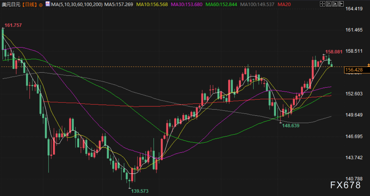 9 月份,日元触及139.58的14个月高点,随后回吐涨幅,目前回到157附近,交易商正在关注东京方面的干预迹象。