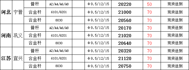12月31日宁晋市场普铝杆现货报盘价20220元/吨,较上一交易日报价涨50元/吨;巩义市场普铝杆现货报盘价20170元/吨,较上一交易日报价涨70元/吨;宜兴市场普铝杆报盘价20320元/吨,较上一交易日报价涨70元/吨。
