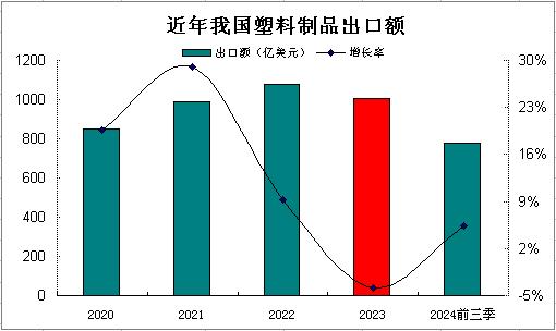 国内塑企国际竞争力的增强是中国塑料行业发展的又一成果。随着国产塑料外贸窗口的增加,越来越多的塑企选择进一步开拓海外新兴市场。据统计,我国塑料制品出口额仅2024年前三季度已达780.21亿美元,2023年全年出口额1008.09亿美元,相较于十年前几乎翻了三倍,已然跻身于塑料出口大国之列。拓展出口市场,搭上海外经济体增长的便车,无疑是我国塑企新兴的蓝海领域。