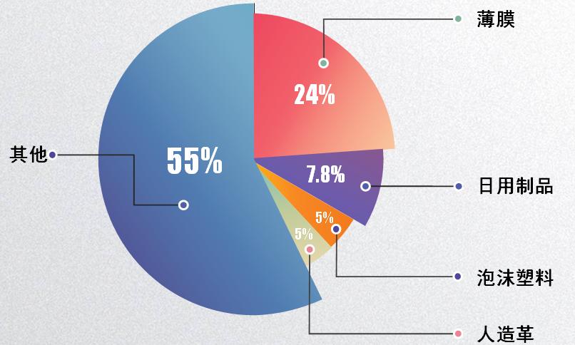从国内下游消费结构来看,2024上半年,我国塑料下游企业共计产出3625.83万吨塑料制品。其中薄膜消费量占比24%,产量高达870.2万吨;其次是日用塑料制品282.9万吨约占7.8%;其余的近70%塑料制品市场,分别被人造革、塑编、建材以及其他塑料制品所占据。消费分布总体呈一超多强格局,行业消费大体健康稳定,国内需求端表现出一定的韧性属性。