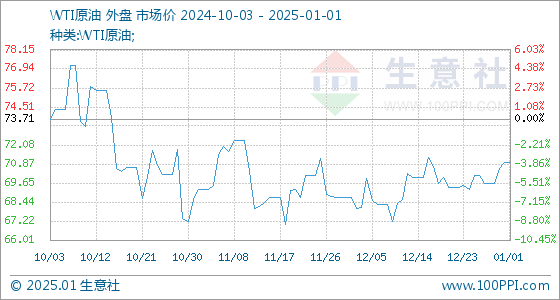 1月1日生意社WTI原油基准价为70.99美元/桶