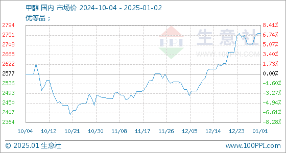 1月2日,生意社甲醇基准价为2758.33元/吨,与本月初持平。
