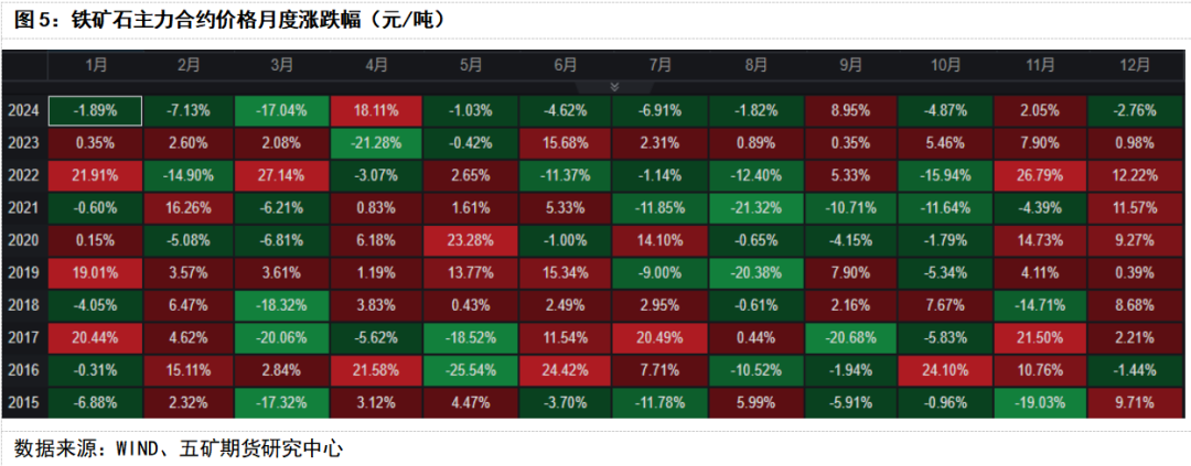 从价格来看,年末铁矿石多呈现“易涨难跌”的走势,且从2020年后,期货价格12月涨幅明显高于以往,我们认为这其中还包含有宏观预期和情绪的溢价因素。