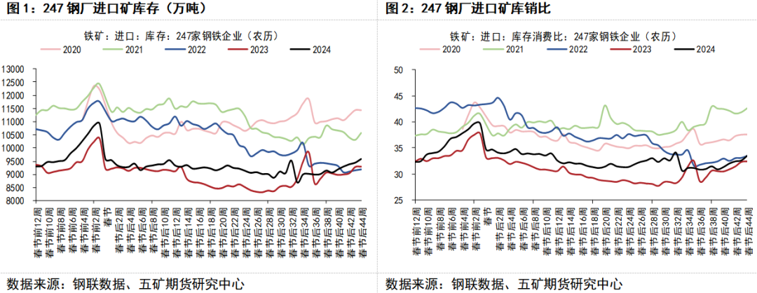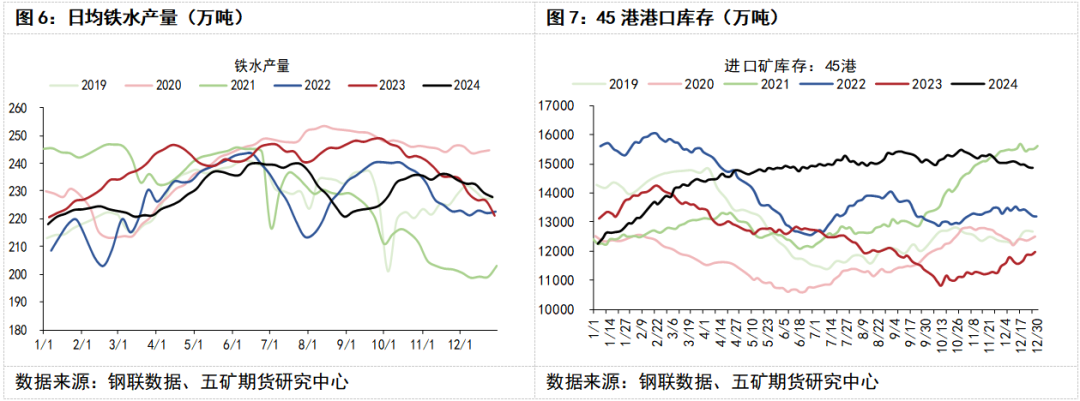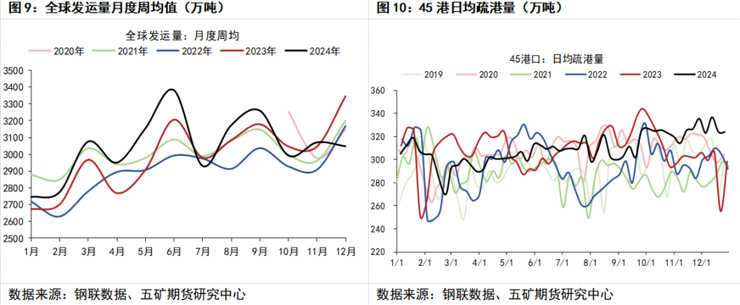 2020-2023年间,四季度都有宏观上的因子驱动矿价上涨:2020年,全球流动性宽松的大背景下,国内地产高周转,需求持续旺盛,铁水维持高位。2021年,政治局会议提出超前开展基建投资。2022年,疫情政策全面放开,市场对于来年经济及需求预期十分乐观。2023年,一万亿特别国债带动市场积极财政预期,需求前景向好。综合来看,除了钢厂为春节期间所提前储备的必要库存支撑铁矿石需求外,宏观预期的提振也会一定程度上带动价格上涨,同时对铁矿石的补库有所带动。