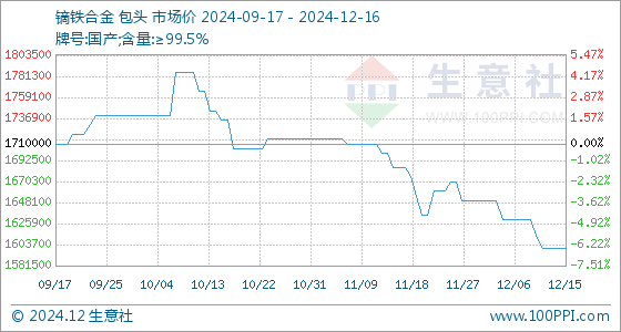 12月16日生意社镝铁合金基准价为1600000.00元/吨