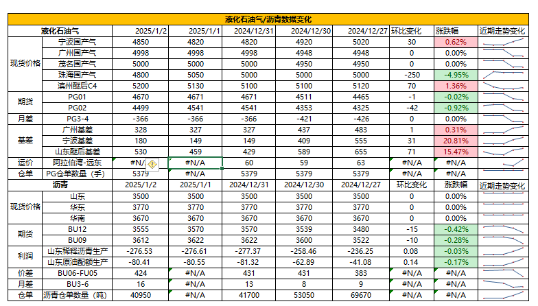 3. 山东民用气4950元/吨,华东民用气4936元/吨,华南民用气5000元/吨。