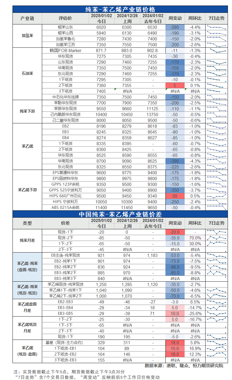 库存:截至2025年1月2日,江苏苯乙烯港口样本商业库存总量:2.71万吨,变动-1.46万吨。