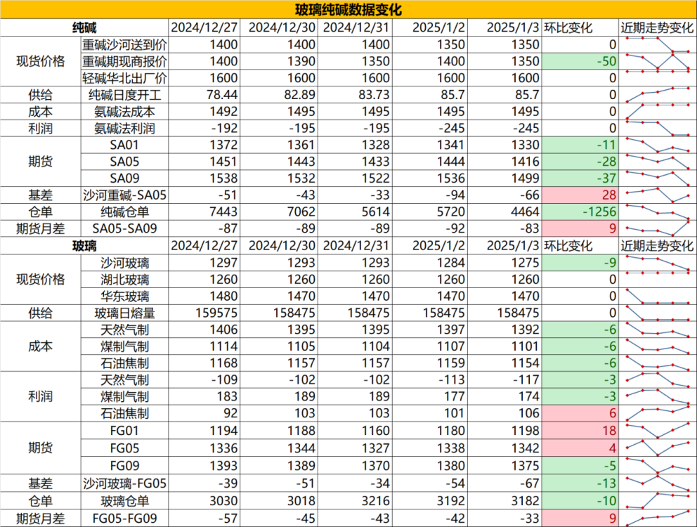 1.目前碱厂沙河送到价在1350-1400元/吨附近,碱厂库存在144.83万吨,环比上周累库0.66万吨,库存高位震荡,由于下游节前补库基本结束,碱厂由前期待发订单导致的去库转为实质性累库,本周部分前期检修企业恢复,产量高位向上提升,下游补库结束后,后续大概率库存持续向上积累,且刚需端光伏玻璃近期仍有两条产线存在冷修计划,供需端驱动均向下。