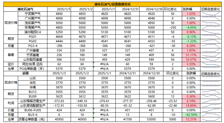 3. 山东民用气4950元/吨,华东民用气4936元/吨,华南民用气5000元/吨。