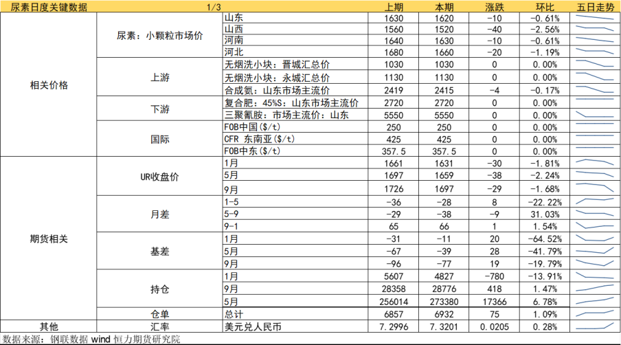 2.供应方面,气头装置检修基本落地,近期部分气头企业有恢复计划,日产预计恢复到十八万吨以上。需求方面,农业零星补货,复合肥工厂对尿素采购有限,淡储持续,整体需求较为分散,后期集中采购的概率也较往年减少,整体市场追高情绪或较为谨慎。当前库存155.08万吨,较上期增加2.58万吨,环比增加1.69%,处在五年高位水平。成本端,近日煤炭价格下行,煤制尿素成本支撑偏弱。总而言之,当前国内供应和政策压力仍存,短期实质性的利好驱动并不明显。会议并未提起出口,市场情绪较为悲观,若无新利好出台,下周预计弱势运行,新低或刺激部分成交,但受制于高库存高供应格局,上方空间有限。