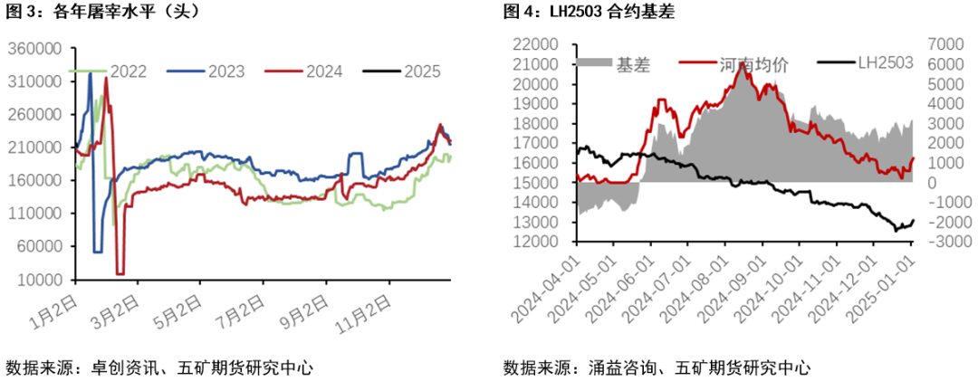 供压前置起到一次小型疫病的作用。去年下半年尤其是四季度养殖持续亏损,供应持续增加导致的恐慌性抛售叠加疫病影响是主要原因,考虑今年产能恢复谨慎、进度整体缓慢,仅仅是季节性因素导致的理论存栏量回升,屠宰量却达到与去年持平的规模,供压前置扮演了一次小型疫情对产能去化的作用;反观需求端,在与23年同期屠宰持平的背景下,考虑体重同比增加,但无论是价格还是盈利水平,24年均好于上年同期,表明消费端基本支撑仍在。23年四季度的疫情对中小猪的去化导致了24年一季度下跌不及预期且涨价提前,本年虽无疫病的明显影响,但供压前置作用类似,或对中短期的现货起到托底作用,市场认为1月份计划和理论供应量依旧偏大,且面临的出栏窗口有限,但标肥差过大引发的压栏和二育入场也能限制跌幅,边际上改善市场的看空情绪,导致冬至后市场未如预期般继续回落,反而触底反弹。另外盘面偏近合约处于普遍的成本线以下,且贴水现货幅度偏大,在现货暂时触底的预期下,近期也走出了一次空头离场引发的回补。