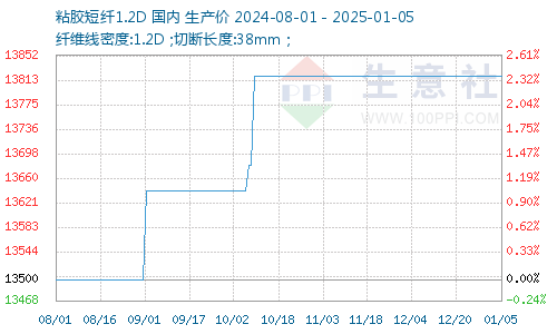 据生意社商品行情分析系统显示,截止到1月5日,粘胶短纤市场均价为13820元/吨,较上上周同期价格持平。