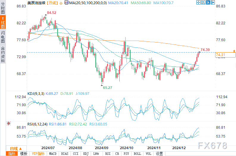 原油价格有望进一步上涨,技术指标显示,天气变冷和供应趋紧风险为原油价格提供了持续走强和基本面支撑。市场维持在200日移动均线上方的能力强化了看涨情绪。然而,美元走强仍是一个明显的逆风,可能会使国际买家的油价变得更加昂贵,从而限制油价上涨的势头。