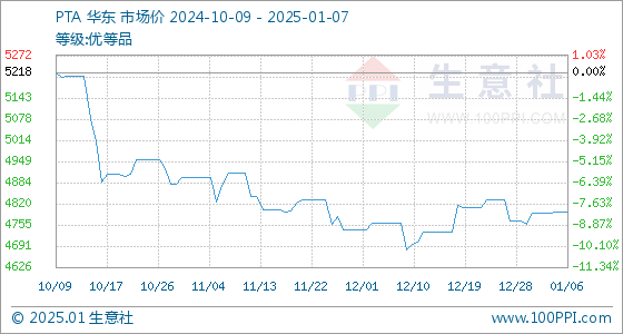 1月7日生意社PTA基准价为4795.56元/吨