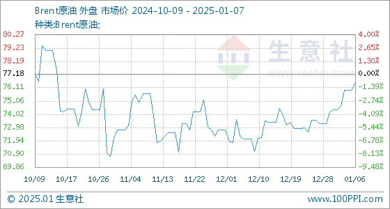 1月7日生意社Brent原油基准价为76.51美元/桶