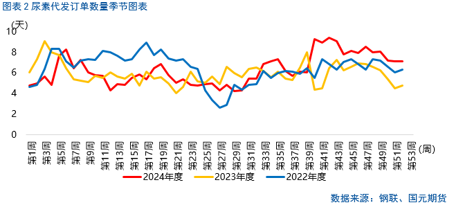 尿素需求不温不火,各地区表现有所分化。主产销区尿素企业新订单适当增加,其余地区综合表现略弱,整体预收订单天数维持不变。截至2024年12月25日,中国尿素企业预收订单天数7.12日,环比持平。