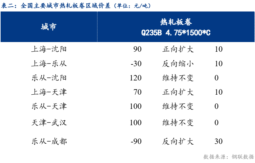 从区域价差来看,华东与东北价差90元/吨,较上一交易日正向扩大10元/吨;华东与华南价差-30元/吨,较上一交易日反向缩小10元/吨;华南与华北价差100元/吨,较上一交易日维持不变。