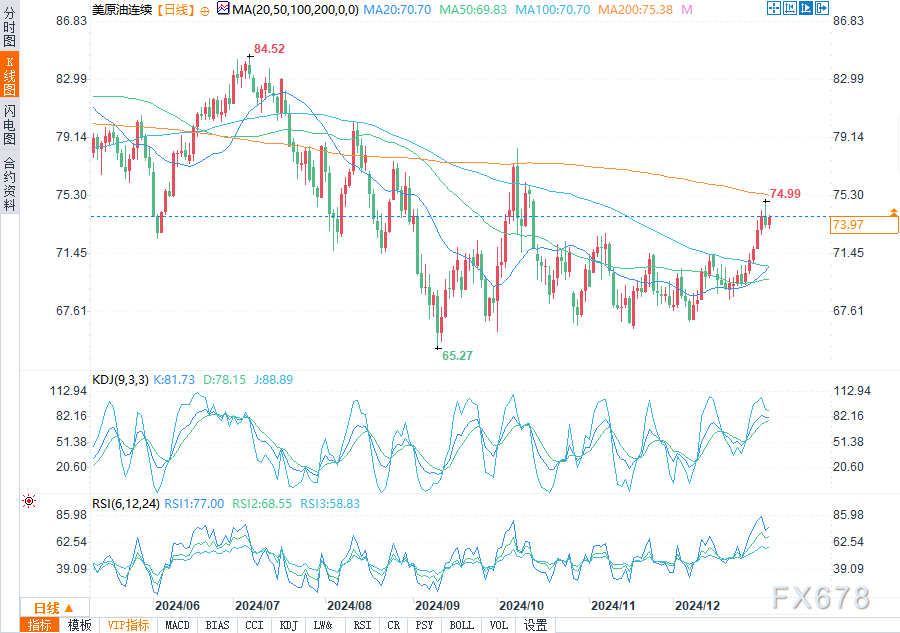 今日预期交易区间位于72.00美元支撑位与75.00美元阻力位之间。