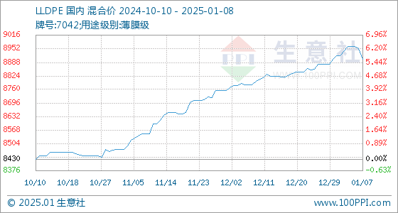 1月8日生意社LLDPE基准价为8905.00元/吨