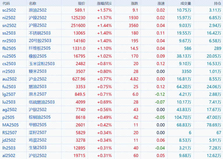 1月8日,午盘收盘,国内期货主力合约涨跌不一。SC原油、20号胶、不锈钢、沪镍、沪锡、橡胶涨超1%,沪金、燃料油、原木涨近1%;跌幅方面,焦煤、氧化铝、玻璃跌超3%,苹果、焦炭、菜粕跌超2%,集运欧线、纯碱、碳酸锂、PVC、螺纹钢、沪锌、尿素、菜油跌超1%。