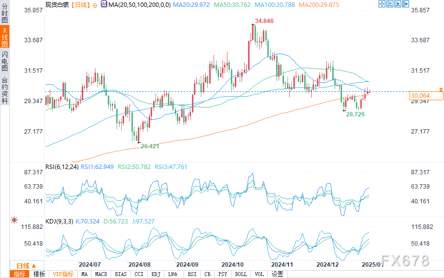 汇通财经APP讯——周三(1月8日)欧盘时段,现货银价险守30美元上方,交易商等待可能推动市场波动的关键经济数据。在银价突破200日移动均线后,看涨情绪正在建立,增强了买家的力量。