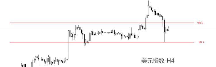 四小时周期看,1月2日下午3:00,美元指数曾快速突破震荡区间上限,持续三根K线之后触顶回落,下跌波段一路跌至震荡区间下限附近。最新市价108.3附近,处于震荡区间中等区域,短期内再次突破上下限的概率较低。昨日大部分消息利多美元指数,而美元指数却持续下跌,主要原因是部分交易者认为美元指数已经处于相对高位,即便有利多消息提振,也很难再次冲高。