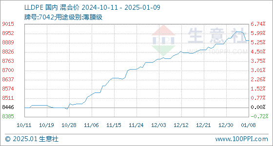 1月9日生意社LLDPE基准价为8905.00元/吨