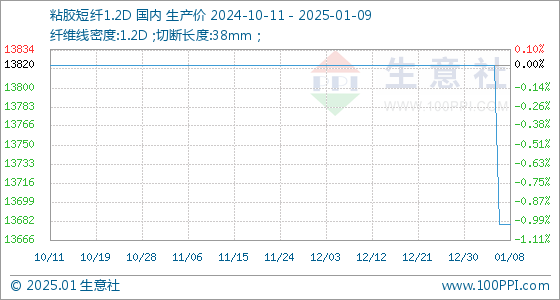 1月9日生意社粘胶短纤1.2D基准价为13680.00元/吨