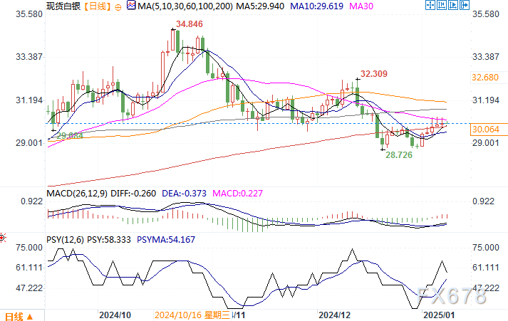 北京时间1月9日13:07现货白银报30.15美元/盎司