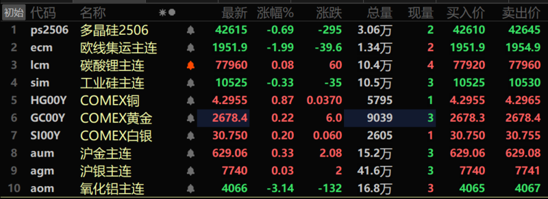 此外,氧化铝跌3.14%。碳酸锂微涨0.08%,工业硅跌0.33%。多晶硅主力期货跌0.69%。