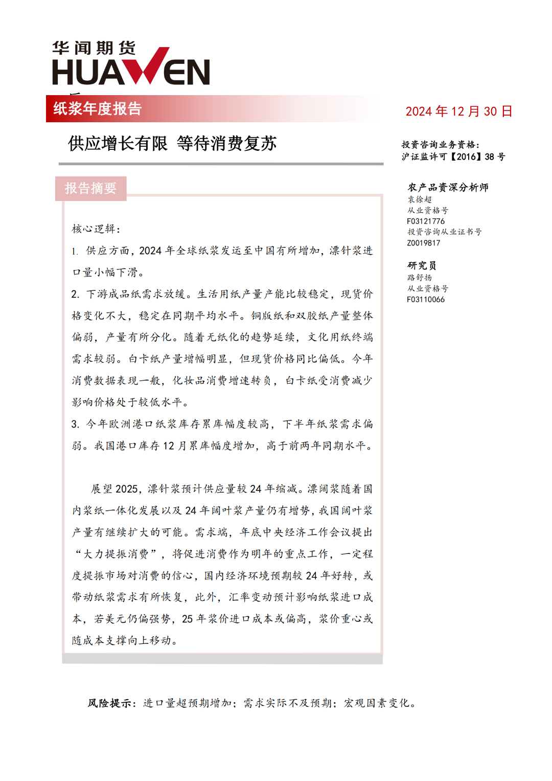 纸浆年报:等待消费复苏