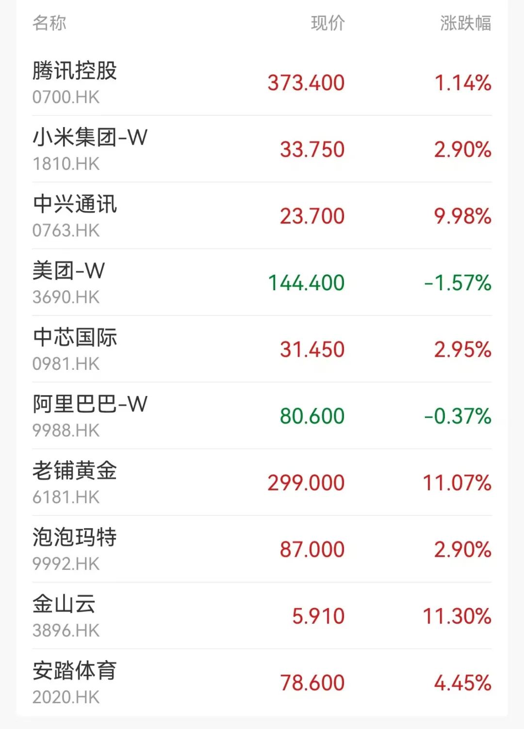 盘面上,大型科技股涨跌不一,小米涨近3%,腾讯涨超1%,网易涨超2%,京东、美团、百度跌超1%;半导体芯片股全天活跃,龙头中芯国际涨约3%,英诺赛科涨超7%;航空股大涨,国泰航空大涨近8%,中国国航、中国东方航空、中国南方航空跟涨。此外,稀土概念股、生物医药股、重型机械股上扬。