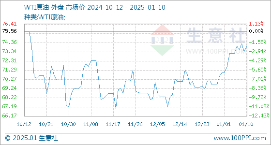 1月10日生意社WTI原油基准价为73.32美元/桶