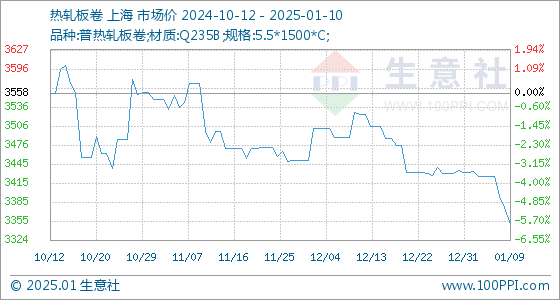 1月10日生意社热轧板卷基准价为3350.00元/吨