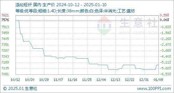 1月10日生意社涤纶短纤基准价为7168.33元/吨