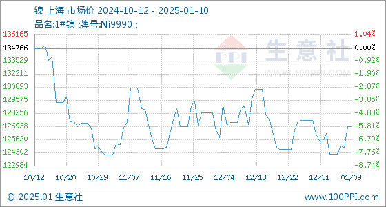 1月10日生意社镍基准价为126875.00元/吨