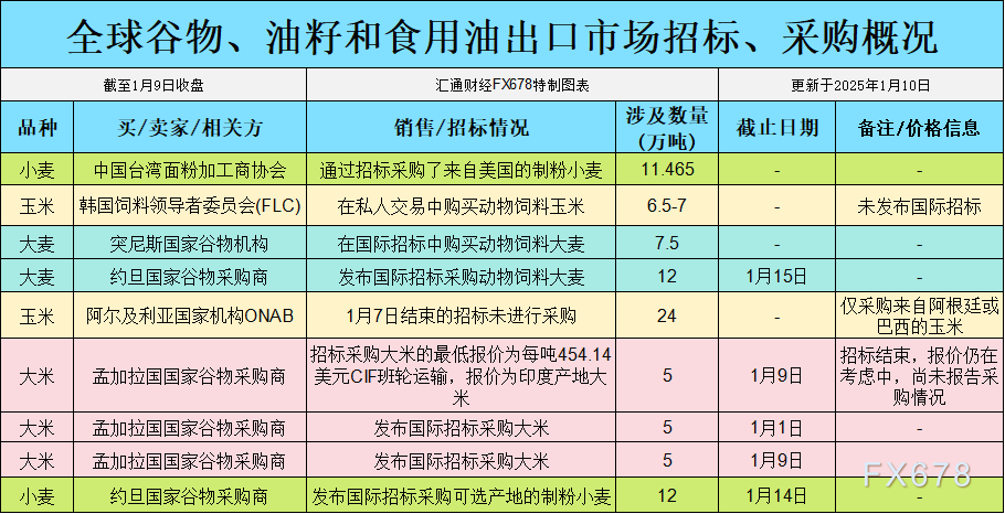全球谷物、油籽和食用油出口市场招标、采购概况: