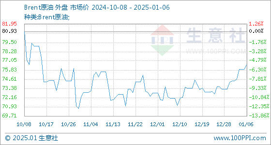 1月6日生意社Brent原油基准价为75.93美元/桶