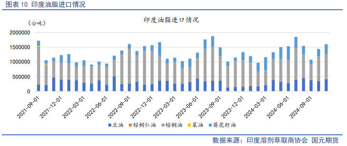 根据NOPA的最新数据分析,美国大豆国内压榨情况显示出强劲的态势。2024年10月,NOPA会员单位共压榨大豆1.99959亿蒲式耳,刷新了2024年3月创下的1.96406亿蒲式耳的前次纪录,较9月的1.77320亿蒲式耳高出12.8%,也比2023年10月的数据高出不少。此外,11月的大豆压榨量为1.93185亿蒲,虽然环比有所下滑,但仍然创下了当月最高纪录。当前美国大豆压榨行业的表现依然强劲,需求旺盛,不过随着特朗普上台,其对化石能源的使用倾向一定程度上或压缩美豆油后市的生产潜力。